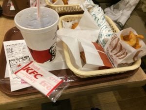 夕方になり、晩ごはんはちょうどあった、ケンタッキーフライドチキンになりました。